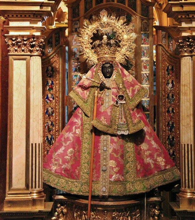 The discovery of the carved image was viewed as a sign from God. In 1337, King Alfonso XI visited the hermitage, asking the Virgin for assistance in his battle against the Muslims. On October 30, 1340, the unified Castilian and Portuguese forces led by Alfonso XI defeated the Muslim Marinids of North Africa at the battle of the Salado River. King Alfonso credited the victory to his faith in La Virgen, and he ordered a Monastery built on the site of the hermitage (Lafaye 1987:222). To help spread the veneration of “our lady,” artists began to paint replications of the carving and earned money for the shrine by selling prints of it. The images’ influence quickly grew.