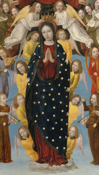 The painting of Guadalupe created by Marcos Cipac de Aquino bears little resemblance to the Guadalupe figure that sits in Extremadura, Spain. Aquino’s tilma at Tepeyak appears to be a hybrid image, combining two popular Marian themes: The Woman of the Apocalypse as described in Revelation 12:1, where she is “A woman clothed with the sun and the moon under her feet, and on her head a crown of twelve stars,” and common depictions of the Assumption of the Virgin. A comparison of the famous tilma image to Marian depictions which were widely available at the time strongly suggests that they served as a visual basis for the tilma image (figures 4–6). Of particular note is the Virgen del Coro, which hangs in the Monastery of Our Lady of Guadalupe in Extremadura, and was created in 1499. The following are just a few examples of the images Marcos Cipac de Aquino had available as inspiration for his famous painting.